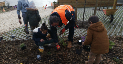 La cour du restaurant scolaire de Cugand a été végétalisée en novembre dernier offrant aux enfants un espace plus...