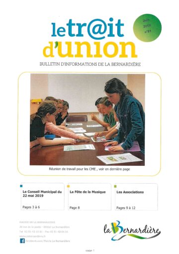 Retrouvez l’ensemble de l’actualité de La Bernardière dans le bulletin d’information Trait d’Union #51 du mois de juin 2019.