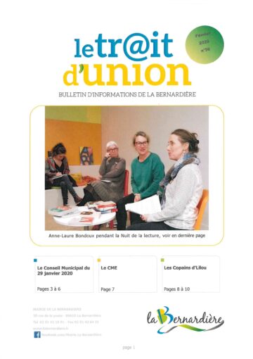 Retrouvez l’ensemble de l’actualité de la Bernardière dans le bulletin d’informationTrait d’Union # 56 de février 2020