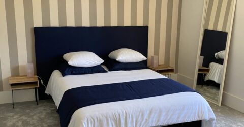 Située au 1er étage, la chambre Hermès de 34 m² se distingue par son caractère. La douceur des moulures, du parquet et des couleurs de la chambre face à l’originalité et l’audace de la salle de bain. Elle est équipée d’ un lit King size (180×200) ou 2 lits (90×200), d’une télévision et d’une pièce d’eau avec douche et baignoire.