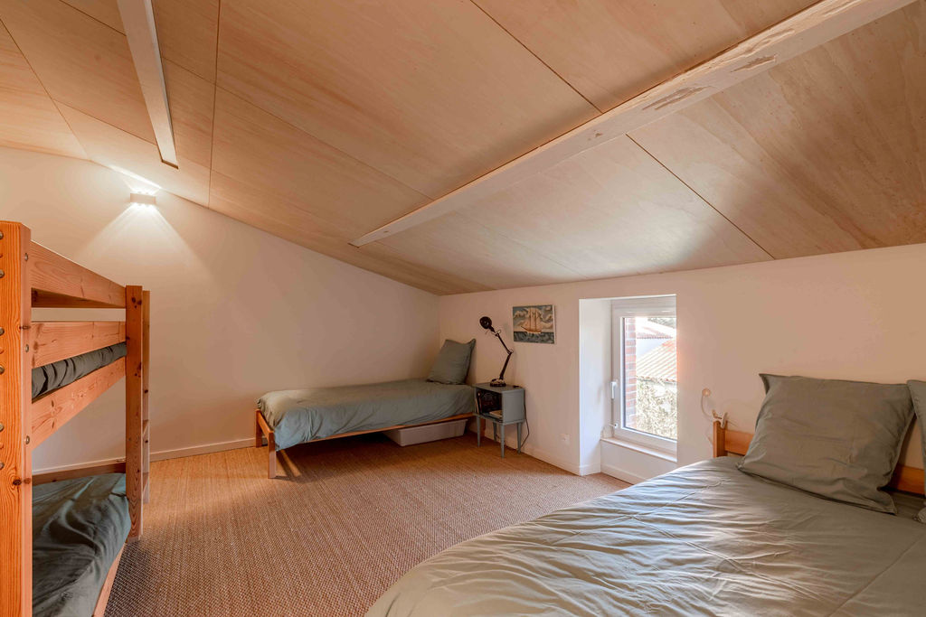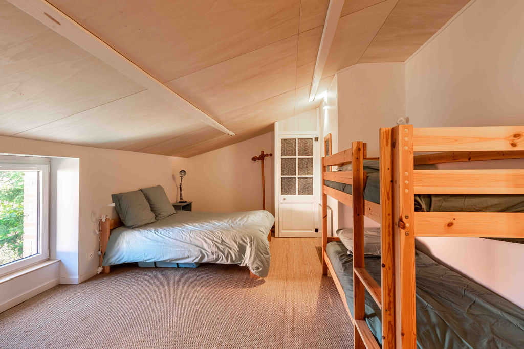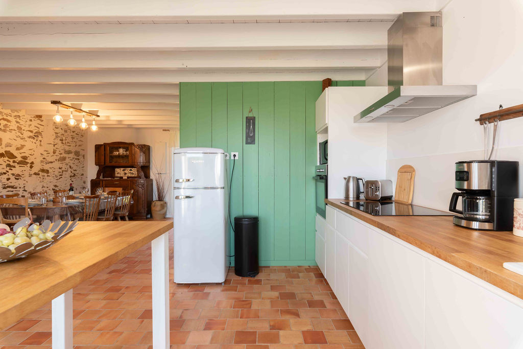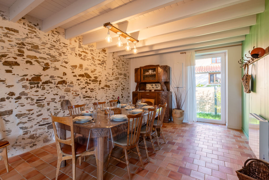 Évadez-vous dans une bâtisse, entre vignobles nantais et terres vendéennes. Découvrez notre gîte de charme à St-Philbert-de-Bouaine. 120m², 9 couchages, draps fournis et lits faits à l'arrivée ! Proche Puy du Fou et Nantes. Située à 4 km du bourg Saint-Philbert-de-Bouaine, à seulement 10 minutes de Montaigu, cette grande maison familiale entièrement rénovée en 2021 est le refuge idéal pour vos tribus. Ici, le charme opère instantanément : les sols en terres cuites, les murs de pierre et les parquets anciens créent une atmosphère chaleureuse et hors du temps. Votre escale confort (9 couchages) : Espaces de vie : 120 m² incluant une cuisine ouverte sur une vaste pièce de vie lumineuse, complétée par un salon séparé pour vos moments de calme. Lits faits à l'arrivée et linge de lit fourni : Voyagez léger, nous nous occupons de tout. (Les serviettes de toilette ne sont pas inclus) Couchages : 2 chambres élégantes et un dortoir convivial (1 lit 160, 2 lits 140, 1 lit 90 et 2 lits superposés). Commodités : 2 salles de bain et 2 WC pour un confort optimal. Extérieurs : Une cour authentique à l'avant et un petit jardin verdoyant à l'arrière pour vos petits-déjeuners au grand air. À découvrir autour de Saint-Philbert-de-Bouaine Séjourner à Saint-Philbert, c'est profiter du calme de la campagne tout en étant à proximité des plus grands sites touristiques : Côté Vignoble & Histoire Clisson (à 20 min) : Surnommée "l'Italienne", laissez-vous séduire par son architecture toscane, son château médiéval et les bords de la Sèvre Nantaise. Le Vignoble Nantais : Vous êtes aux portes du Muscadet ! Profitez-en pour visiter une cave locale et déguster les crus de la région. Montaigu (à 10 min) : Découvrez son patrimoine, ses parcs (Parc des Rochettes) et ses restaurants au bord de la Maine. Côté Émotions Le Puy du Fou (à 45 min) : Prévoyez une journée pour vivre l'expérience inoubliable du meilleur parc du monde. Les Machines de l’Île à Nantes (à 35 min) : À moins de 40 minutes, plongez dans l'univers de Jules Verne avec le célèbre Éléphant géant et le Carrousel des Mondes Marins. Nature & Loisirs Lac de la Chausselière (à 20 min) : Un site parfait pour le canoë, le paddle ou une randonnée paisible en forêt. La Maison de la Rivière : À proximité de Montaigu, pour une balade romantique en barque sous les saules pleureurs. Océan Atlantique (à 1h) : Les plages de Pornic ou de Saint-Jean-de-Monts sont accessibles pour une escapade iodée à la journée.