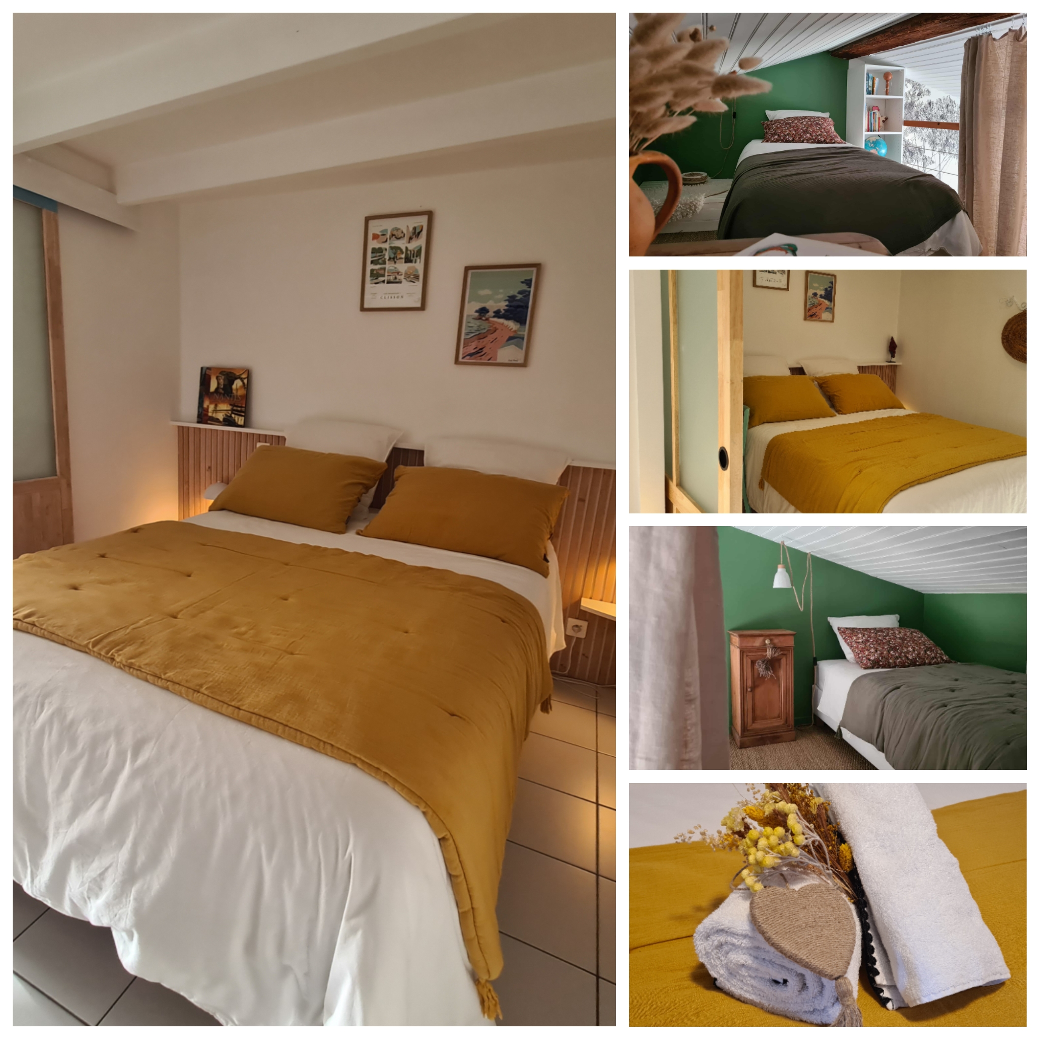 Le Citrus – à 30 min du Puy du Fou - Petit-déjeuner offert. À seulement 30 minutes du célèbre Puy du Fou et de Nantes, découvrez “Le Citrus”, un appartement T2 lumineux et entièrement rénové, idéalement situé au cœur du centre historique de Montaigu. Profitez d’un séjour confortable et pratique, à proximité immédiate des commerces, restaurants et parcs paysagers — tout est accessible à pied ! Petit-déjeuner offert pour bien commencer vos journées de découverte ! Lits faits à l’arrivée, linge fourni et nombreux équipements pour un séjour sans souci. Le logement : Rénové à neuf fin octobre 2025, Le Citrus (45 m²) allie confort moderne et charme ancien. Il dispose d’une entrée indépendante et d’un escalier intérieur menant à votre espace privé. Cuisine équipée : Four traditionnel & micro-ondes, plaques induction, cafetière Dolce Gusto (capsules fournies), bouilloire, grille-pain, appareil à raclette. Produits ménagers bio et de base disponibles Salon : Canapé, TV, Table bistro et fauteuils. Chambre principale : Lit double 140x200, tables de chevet, grand placard avec penderie. Salle de bain : Baignoire, WC, lave-linge (lessive fournie), sèche-cheveux, shampoing et gel douche bio, serviettes et gants. Mezzanine : 2 lits simples 90x200, Bureau, penderie, rideaux pour plus d’intimité. Équipements famille et voyageurs, lit bébé et chaise haute sur demande. Local vélos couvert et fermé. Wi-Fi Fibre, Box Free, guides touristiques à jour, livres et jeux de société. Boîte à clés sécurisée pour une arrivée autonome Situation idéale : - Stationnements gratuits à 20 m - Commerces et restaurants à 50 m - Parcs paysagers à 350 m - Cinéma à 500 m - Gare SNCF à 10 min à pied - Autoroute A83 à 10 min en voiture Un logement calme, lumineux et fraîchement rénové, parfait pour un séjour en famille, touristique ou professionnel. Profitez de la proximité du Puy du Fou et du confort tout équipé et du petit-déjeuner offert !